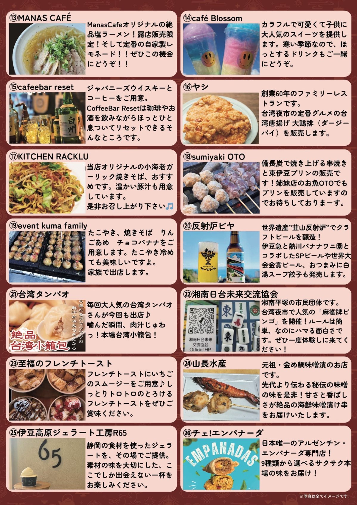 出店:台湾グルメや地元の味をふるまう、テントやキッチンカーが26店舗集合します